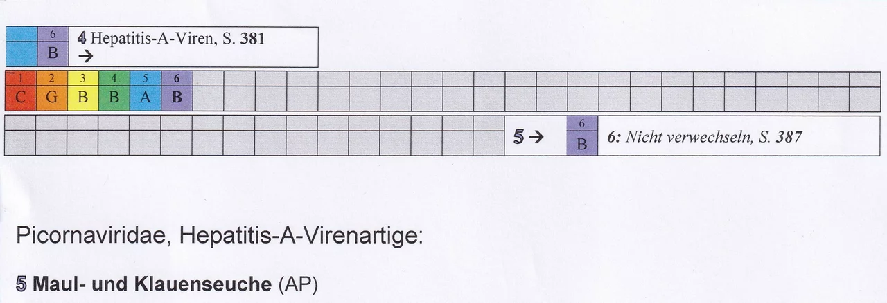 CGBBAB1 Gemeinsames (AP), S. 373. – CGBBAB2 Rhinoviren (AP), S. 374. – CGBBAB3 Poliomyelitisviren (AP), S. 377. – CGBBAB4 Hepatitis-A-Viren (AP), S. 381. – CGBBAB5 Maul- und Klauenseuche (AP), S. 383. – CGBBAB6 Nicht verwechseln (AP), S. 387. –