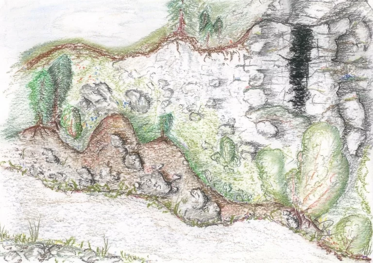 [6] Tintenstriche: Auffällige, schwarze oft breitstrichförmige, ach unten zu schmäler werdende Beläge an fast senkrechten Felswänden