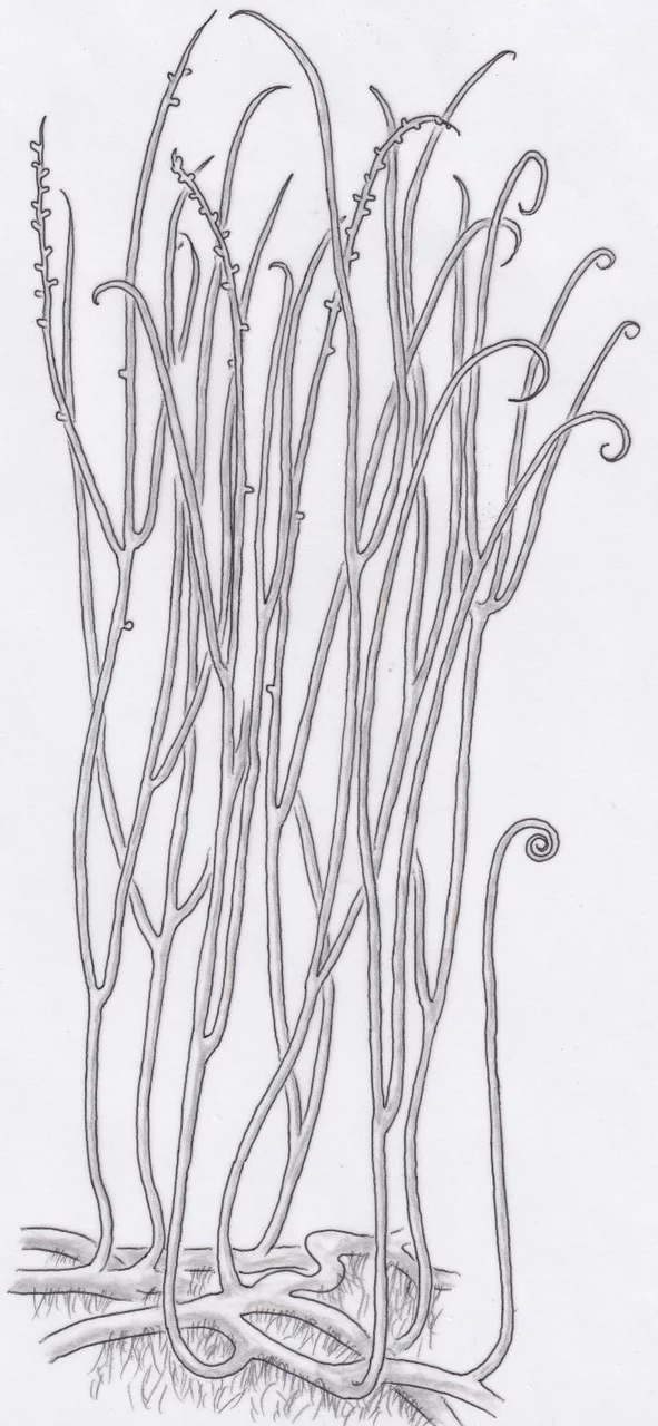 Sciadophyton sp. (Tusche, Bleistift, Kreide; Reinhard Agerer)